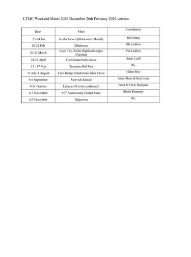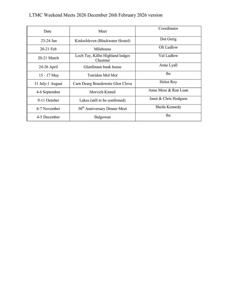 See here for a pdf the latest list of 2026 weekend meets with Coordinators Feb 2026 version